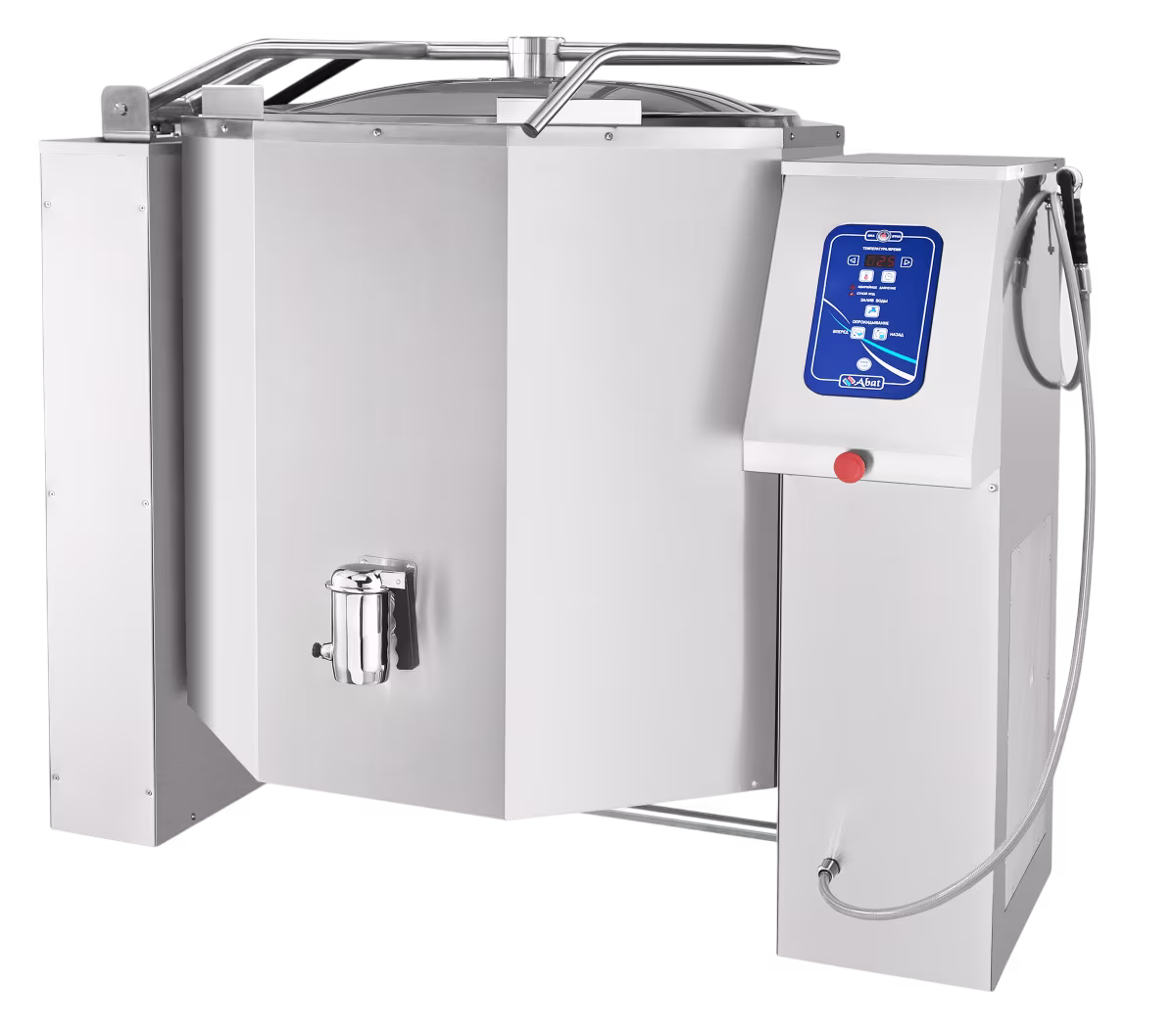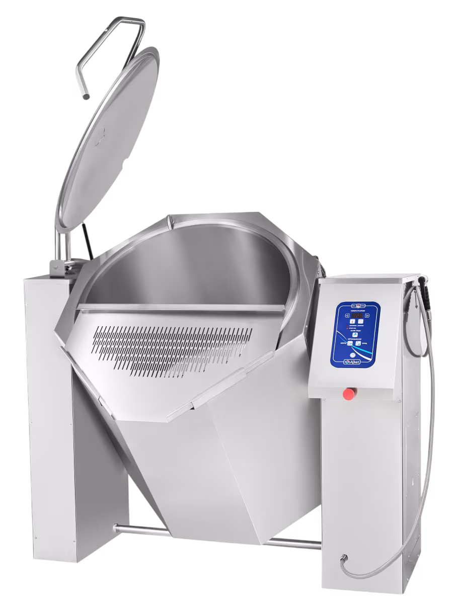 ⚙ Опрокидывание котла выполняется электроприводом для контролируемого слива продукта. Легкосъёмный миксер с усиленной конструкцией и нижним приводом имеет ступенчатую регулировку скорости и реверс, предусмотрен ручной душ для гигиенической мойки сосуда.