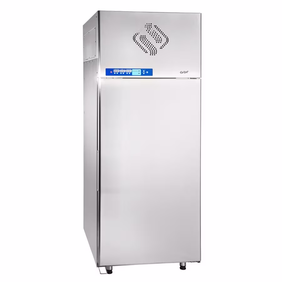 Основные характеристики : 20 уровней универсальных направляющих для гастроемкостей GN 1/1 или противней 600х400 мм; холодильный агрегат на основе компрессора Copeland (Emerson); хладагент — R404a; электронный блок управления с возможностью регулирования и поддерживания необходимой температуры; цельнозаливной пенополиуретаном корпус; климатический класс 5; воздухоохладитель с 4-мя вентиляторами для равномерного распределения температуры внутри полезного объема; автоматическая оттайка горячим газом; уплотнитель с магнитной вставкой (доводчик) на двери для обеспечения полной теплоизоляции; трехточечный температурный щуп для измерения температуры внутри продукта. Потребление э/энергии 6 кВт/ч.