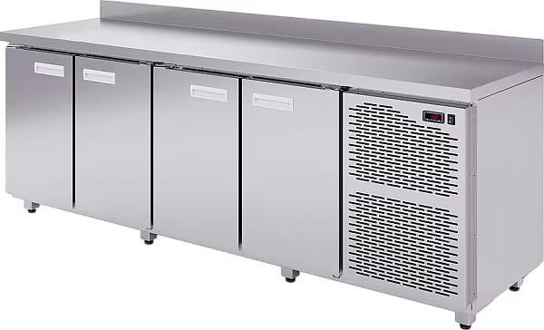 🛠 Корпус и столешница выполнены из нержавеющей стали. Охлаждение — статическое со вспомогательным вентилятором, что обеспечивает более равномерное распределение холода в камере. Холодильный агрегат расположен снизу, снижая шум и облегчая обслуживание.
