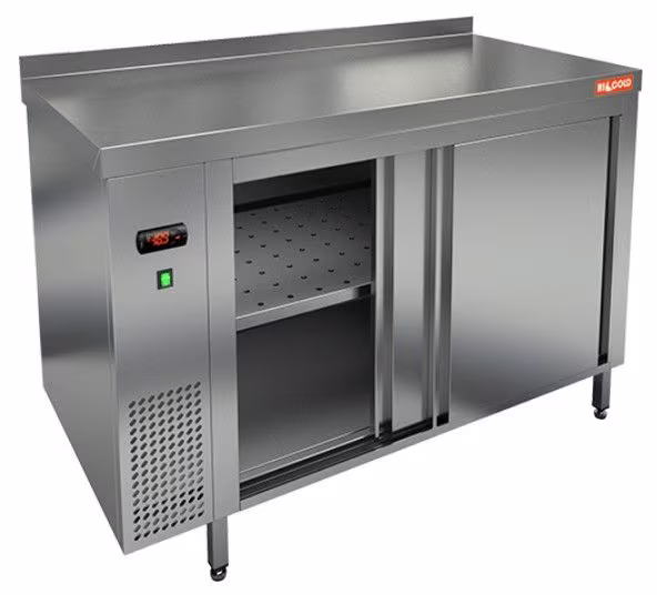 Пристенный тепловой стол HICOLD TS 10 SN используется для подогрева тарелок перед сервировкой, а также для кратковременного сохранения блюд в горячем виде на предприятиях общественного питания. Полностью изготовлен из нержавеющей стали.